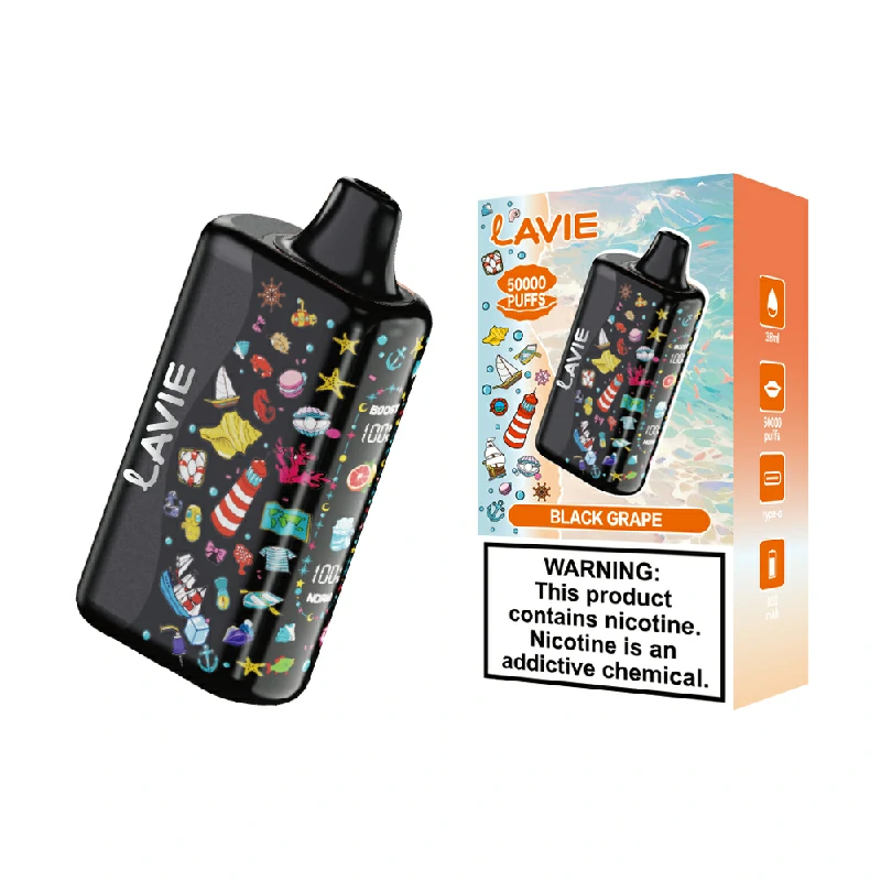 Discover the Lavie 50000 Puffs disposable vape with 38ml e-liquid, 850mAh battery, Type-C charging, and smart digital display for long-lasting vaping.